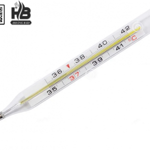 Hiệu chuẩn nhiệt kế trước khi đo: Để nhiệt kế trong hộp nhựa bảo vệ hoặc cầm chắc nhiệt kế dọc theo ngón cái và ngón trỏ rồi lắc nhẹ vài lần để thủy ngân dồn hết về phía bầu inox sao cho cột thủy ngân nằm dưới vạch 35 độ C là được